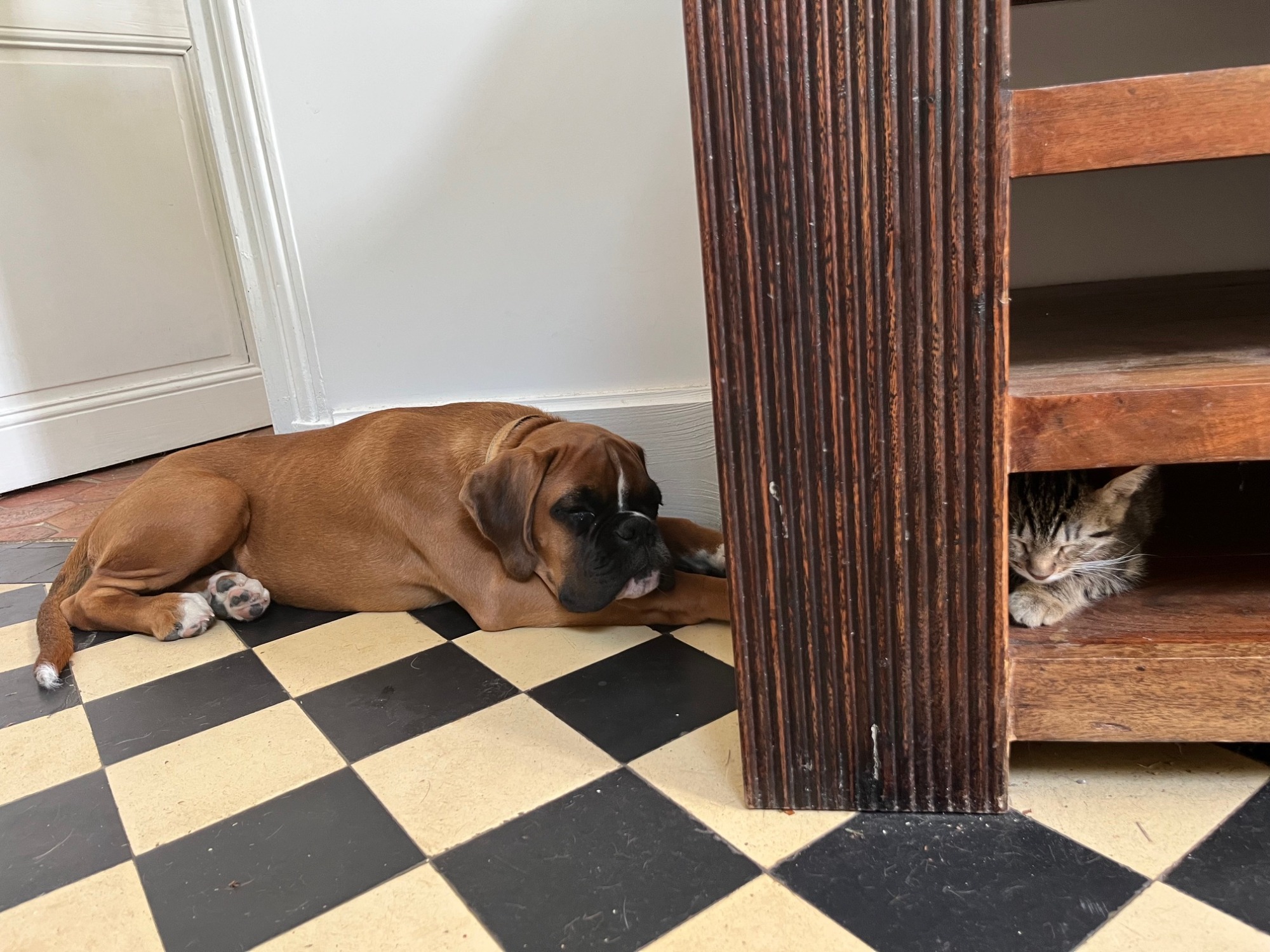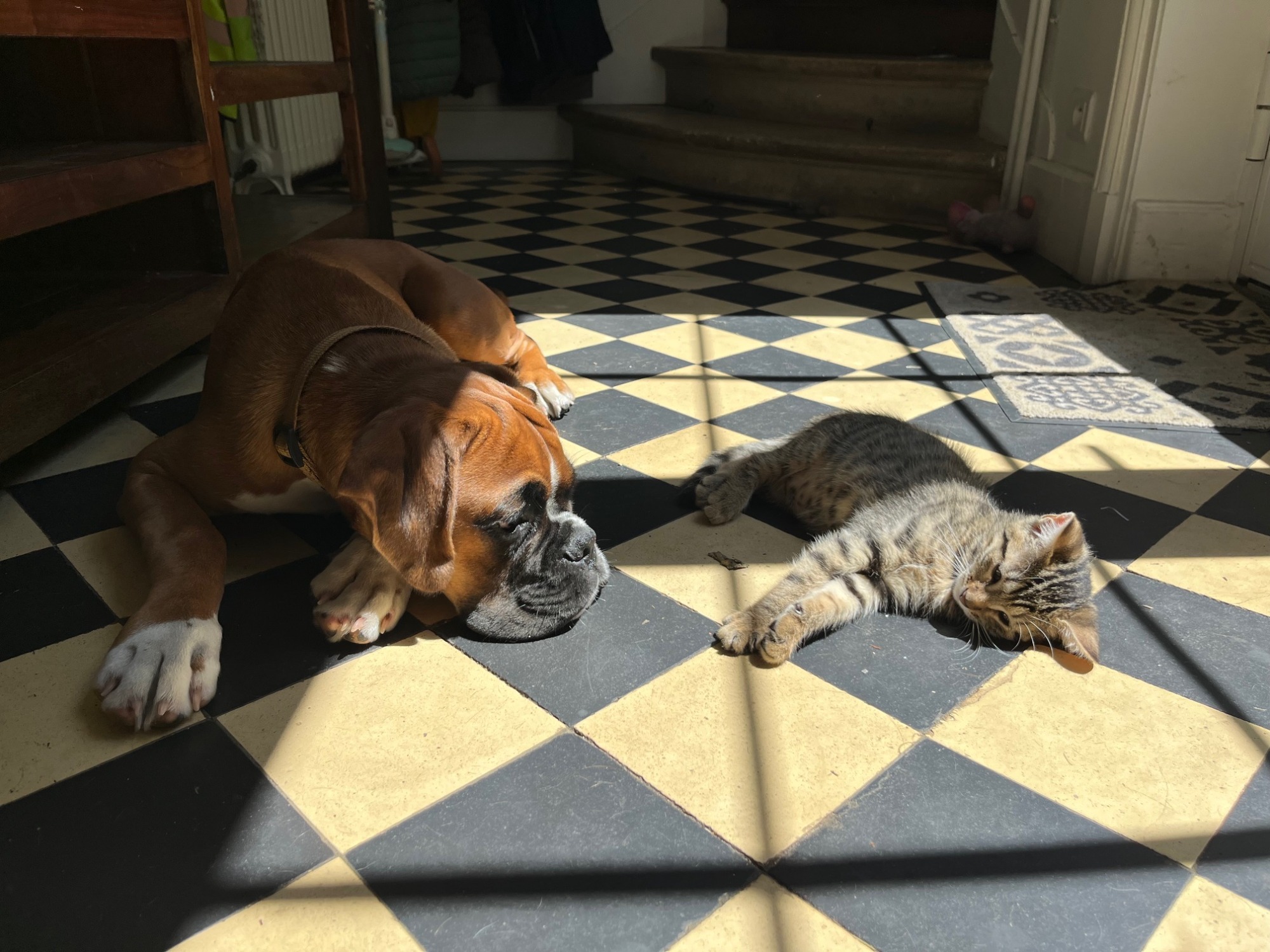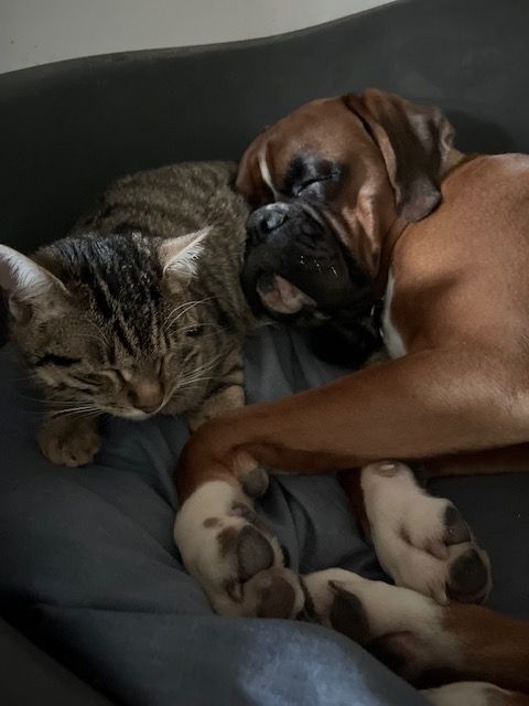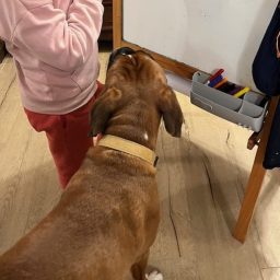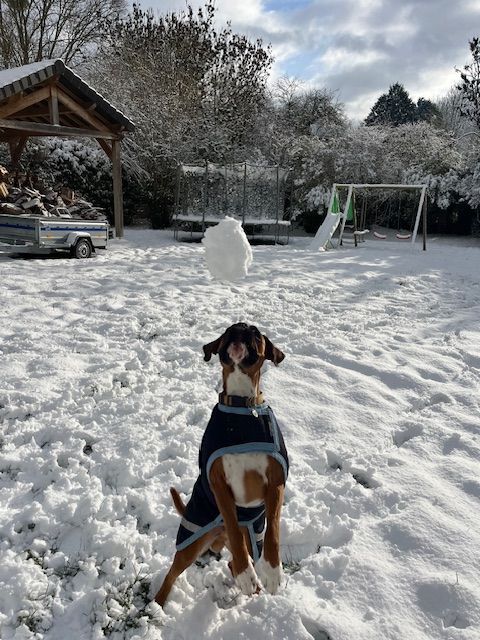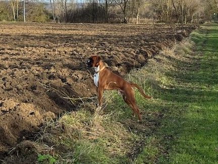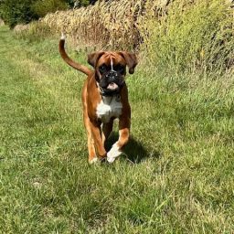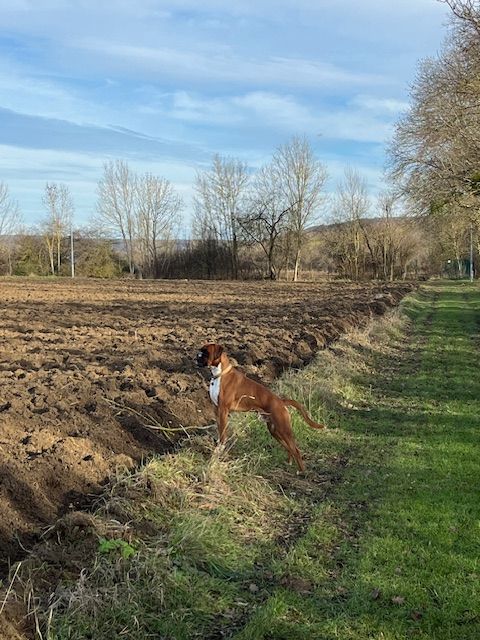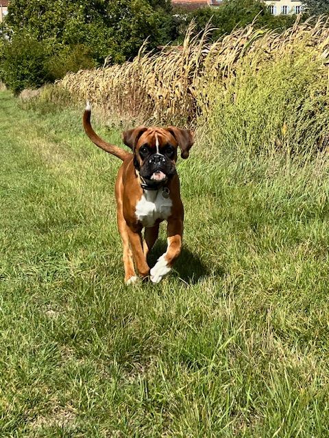 Chien boxer de couleur fauve, Ardent est âgé de 11 mois. Il est avec nous depuis ses 3 mois. Comme tous les boxers, il est musclé, joueur, et adore la compagnie des enfants, se laissant manipuler dans tous les sens.