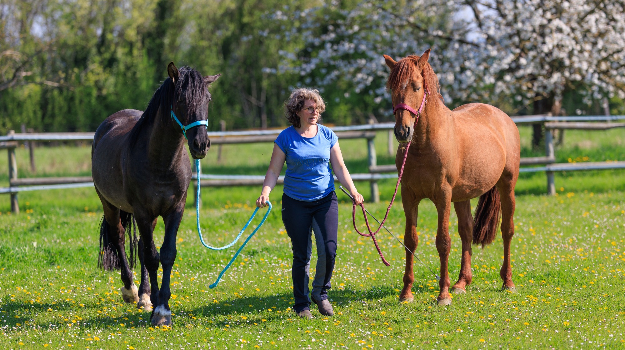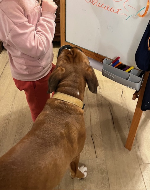 Même si elle ne fait pas de médiation par l’animal, elle s’occupe de l’éducation et du respect de son territoire auprès des petits, Ardent et Etincelle.