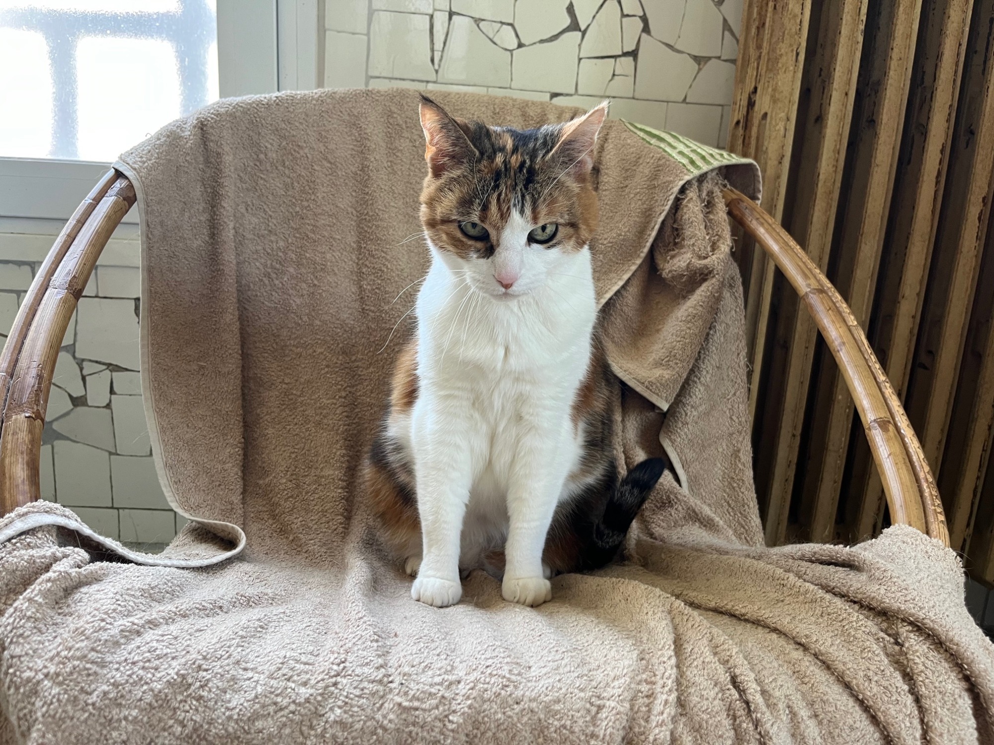 Chatte type européen écaille de tortue, Lisette est âgée de 12 ans. Elle a vécu auprès d’une personne âgée depuis ses 3 mois et nous a rejoint depuis ses 5 ans. Très indépendante, elle est la maîtresse des lieux et a ses petites habitudes.