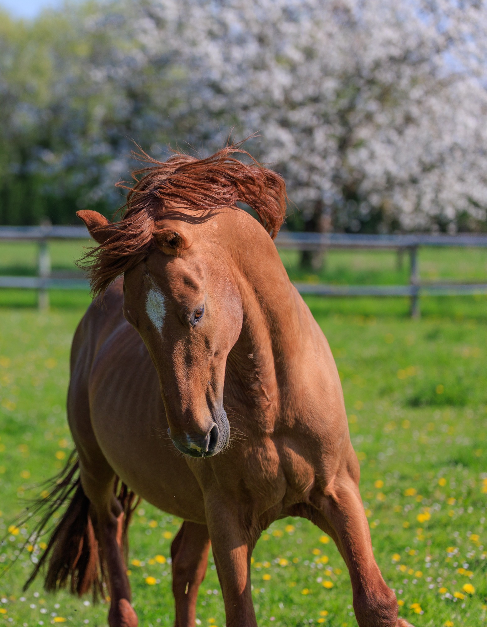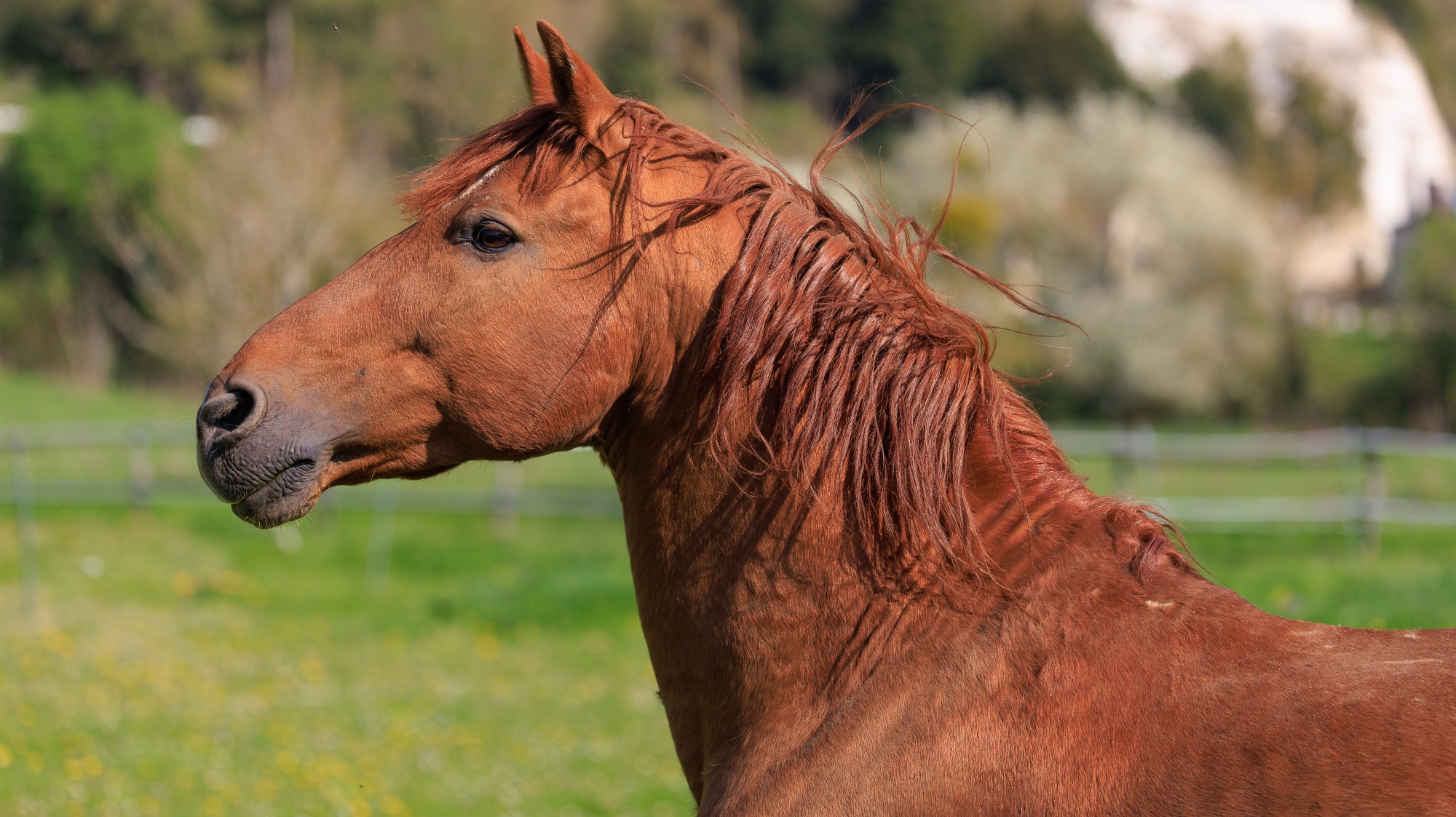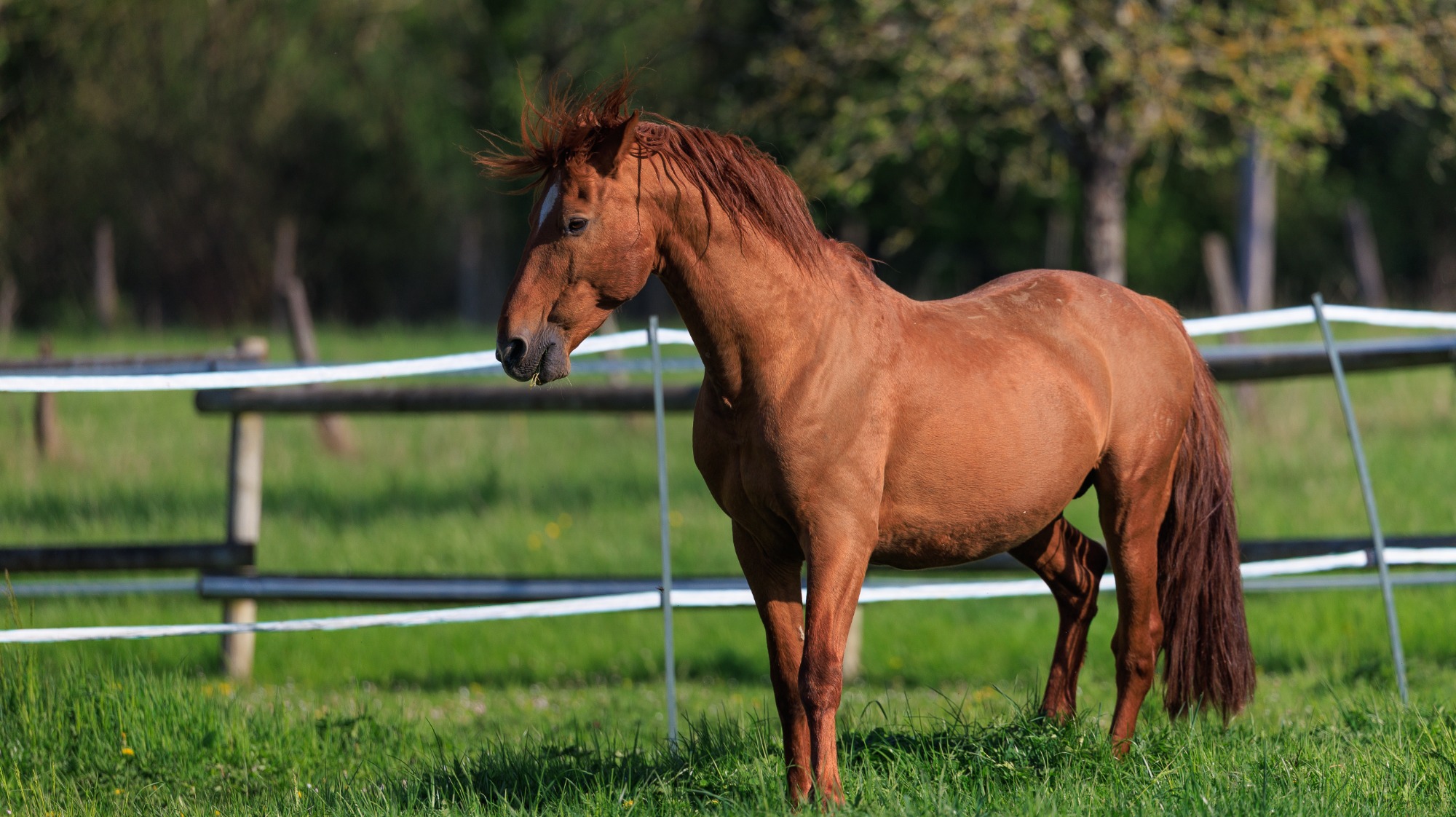 Oracio est un cheval alezan cuivré de 16 ans, en pleine force de l’âge. Il est avec nous depuis l’âge de 4 ans et demi. Bien que dominé par Gracioso dans le pré, Oracio est sa référence.